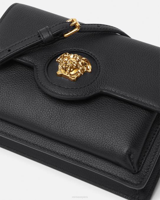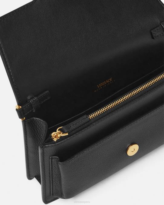 Este pequeño bolso bandolera, confeccionado en piel ligeramente granulada, está adornado con una placa central de Medusa y cuenta con un bolsillo frontal adicional. El estilo cruzado se puede llevar en la mano gracias a la correa de cuero ajustable y desmontable.
