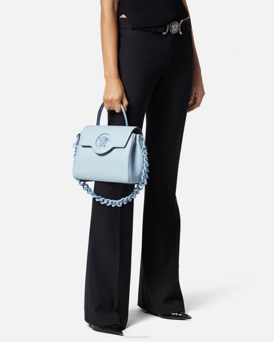 Este bolso de mano exclusivo, elaborado en cuero granulado con una silueta estructurada, está adornado con una placa de Medusa en la parte delantera. Este estilo versátil se puede llevar en la mano o cruzado usando la cadena intercambiable y las correas de cuero para los hombros.