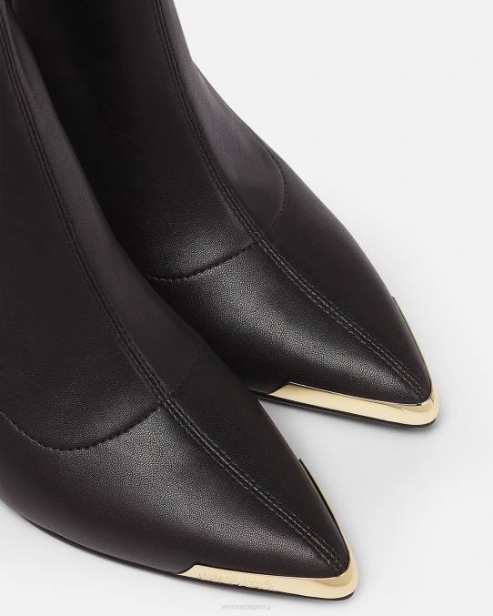 Estos botines de tacón alto tienen puntera puntiaguda con un detalle de herraje y un motivo de logotipo grabado en la punta. Están detallados con un cierre de cremallera lateral.