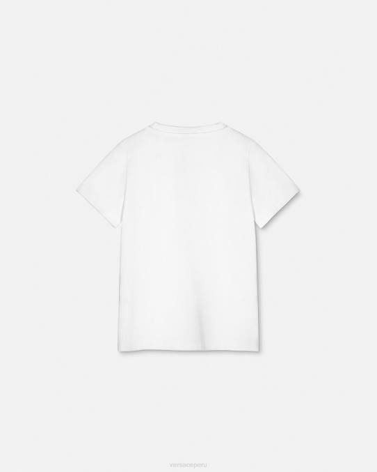 Esta camiseta de punto de algodón suave presenta un motivo infantil con el logo de Versace con elementos galácticos en un acabado metálico.