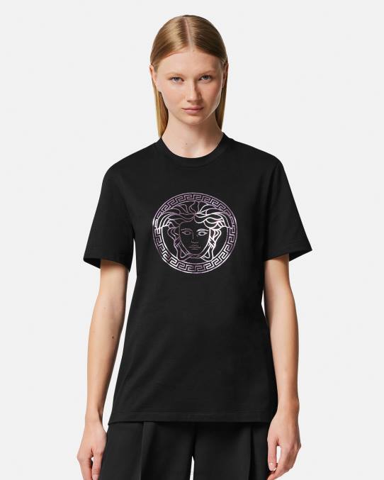 Versace ropa mujer camiseta medusa 6BPV127 negro y rosa