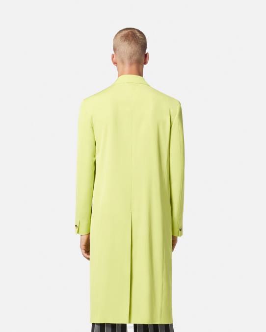 Confeccionado en una mezcla de sarga de algodón, este abrigo de doble botonadura está completamente forrado y presenta solapa de pico y bolsillos delanteros con solapa.