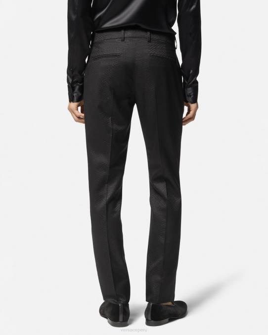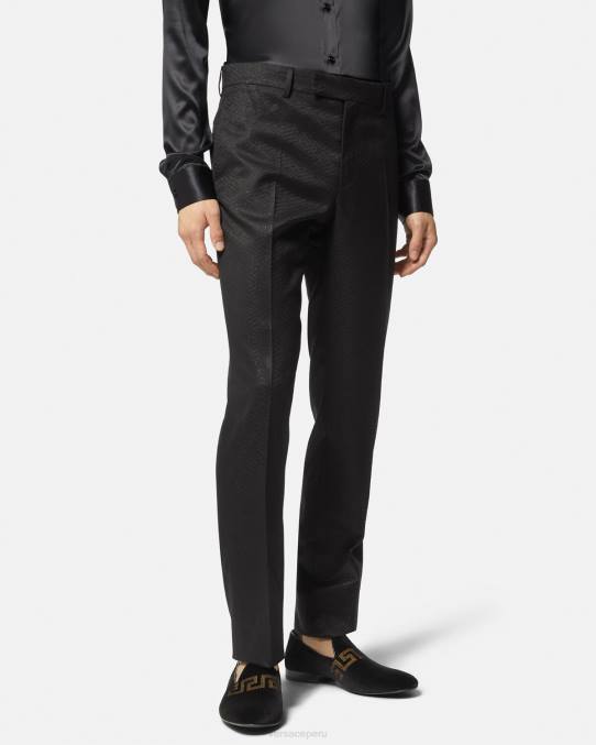 Estos pantalones formales presentan un patrón de La Greca en jacquard, delineado por hilos de lúrex tonales. El estilo entallado se completa con un bolsillo en forma de "V" y un cierre de cremallera y gancho oculto.