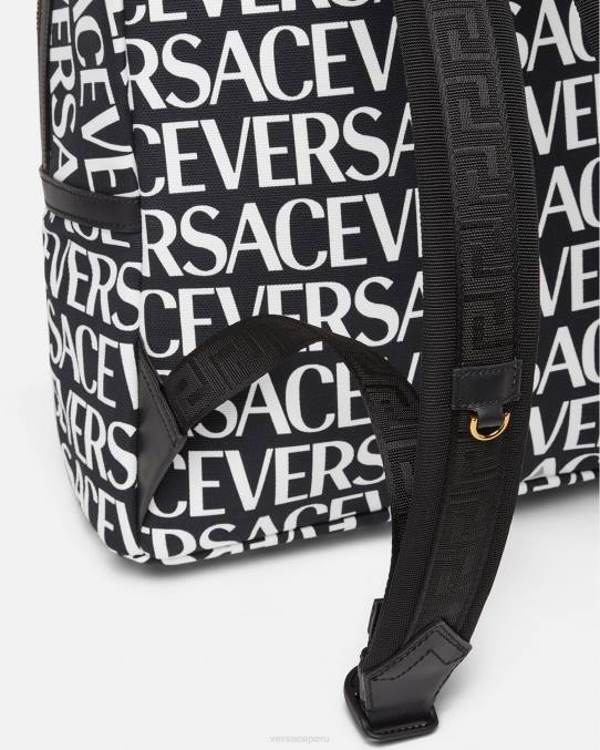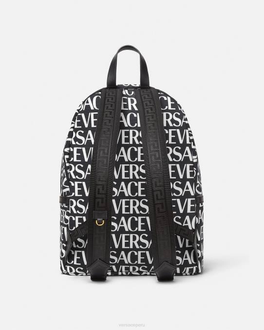 Esta mochila, confeccionada con lona revestida, presenta el logotipo de Versace estampado por toda la prenda. El estilo práctico tiene un gran bolsillo frontal para un fácil acceso, mientras que el espacioso interior tiene un bolsillo con cremallera y cremallera. Un patrón de greca de jacquard aparece en las correas de los hombros.