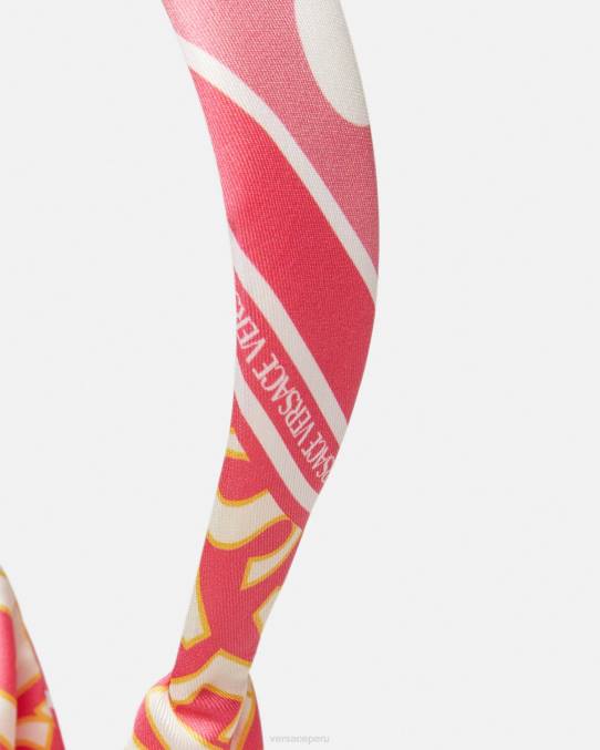 una diadema ligeramente acolchada con cierre tipo bufanda y estampado de lunares de Versace, una versión elevada del patrón del logotipo con letras delineadas.