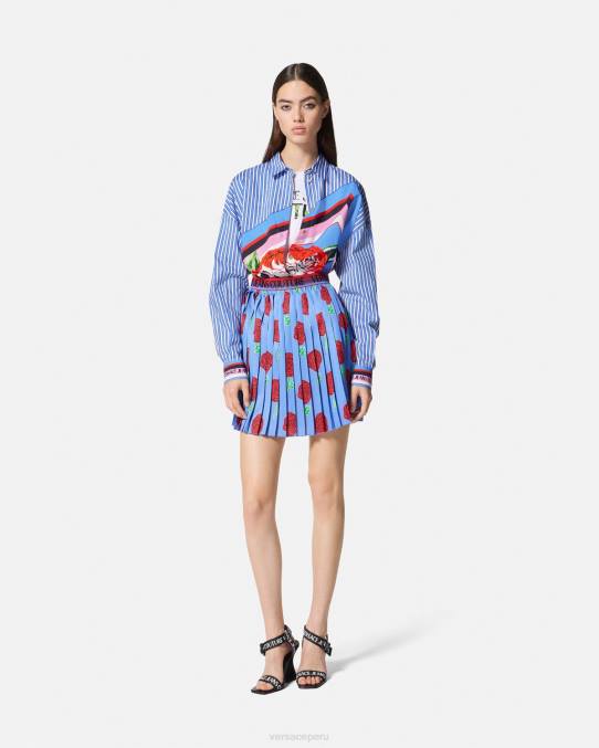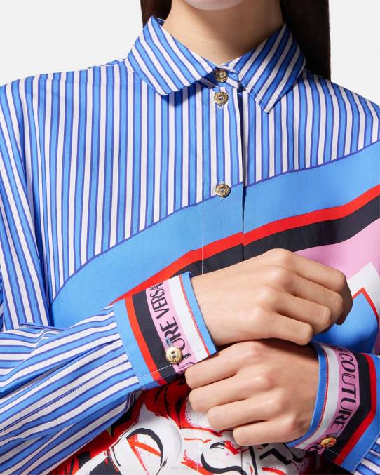 una camisa de manga larga confeccionada en popelina de algodón, que presenta un diseño de rayas con estampado de rosas colocadas.