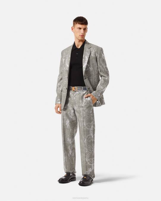 Confeccionado en una mezcla de seda y algodón, este polo de manga corta presenta una construcción tipo gofre texturizada, detallada con el patrón de greca en los bordes, una línea ininterrumpida que simboliza la unidad y el infinito.