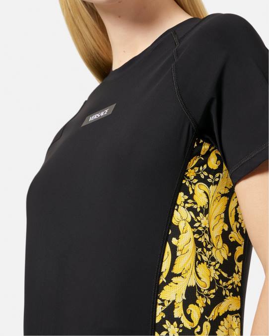 Agregando la actitud de Versace a la ropa deportiva, esta camiseta de gimnasia está adornada con el logotipo de Versace e inserciones con estampado barroco.