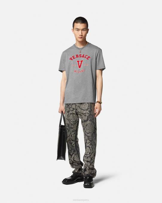 Con un logotipo universitario bordado y con textura de felpa, esta camiseta de manga corta es un símbolo orgulloso de pertenecer a la familia Versace. Confeccionado en algodón con un corte estándar, este modelo está rematado con un cuello redondo de canalé.