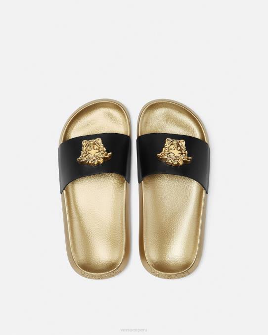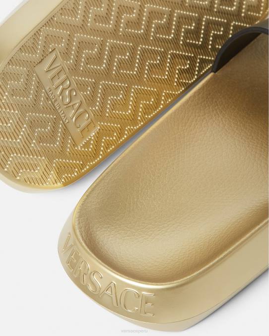 Estas sandalias están adornadas con una placa tridimensional de la Medusa y el logotipo de Versace en el talón.
