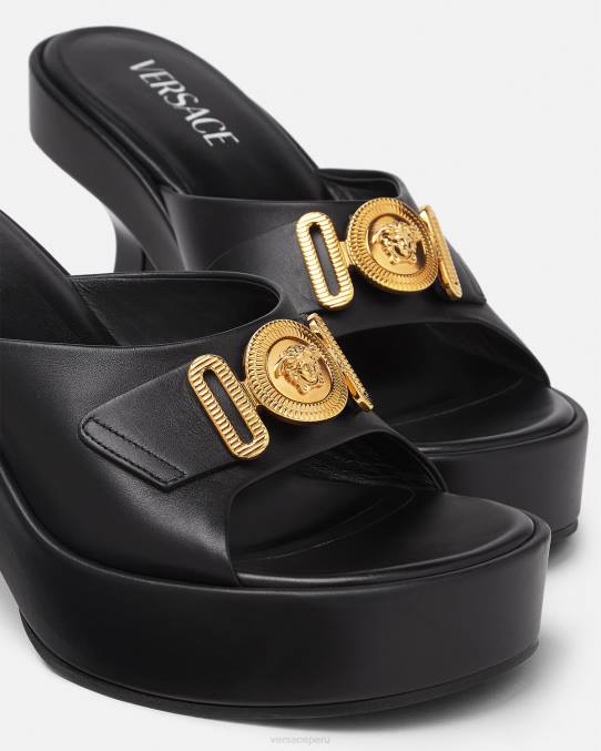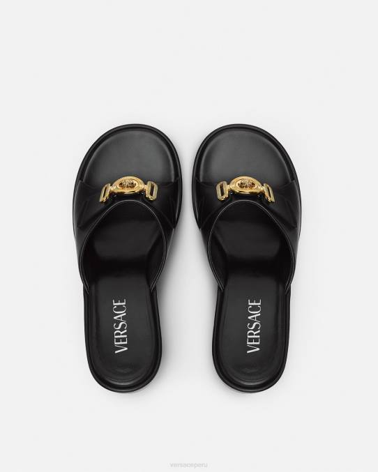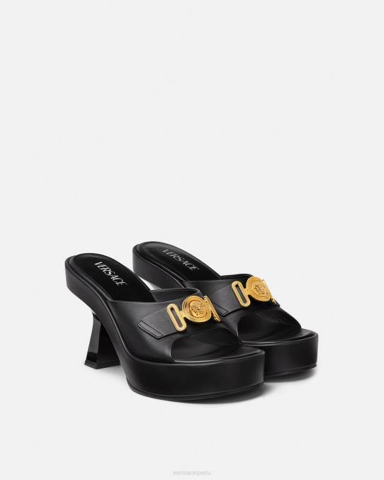 Con punta redonda, estas mules abiertas tienen un tacón de bloque medio y están enriquecidas con el hardware Medusa Biggie, un símbolo de la marca inspirado en la cultura musical de los 90.