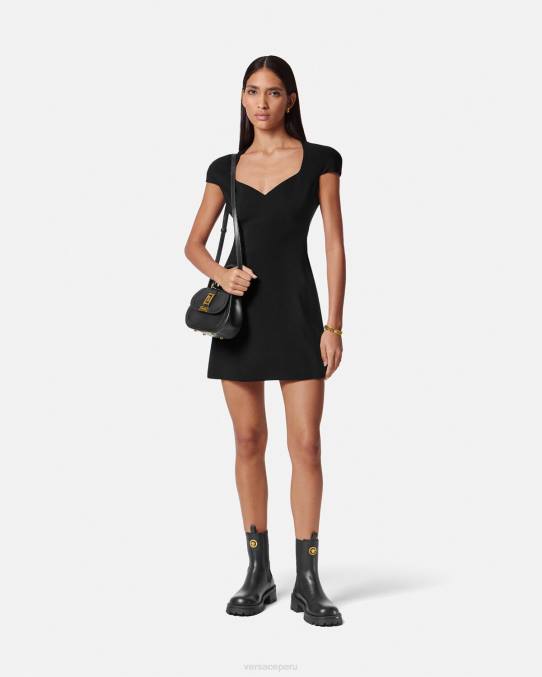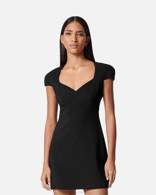Confeccionado con una silueta recta, este minivestido tiene un elegante escote en forma de corazón y mangas cortas.
