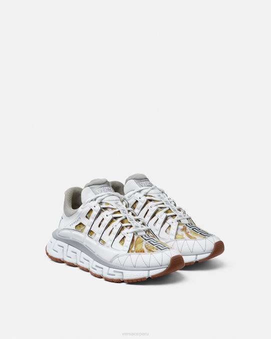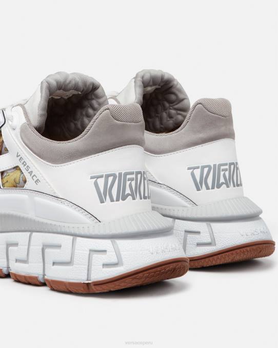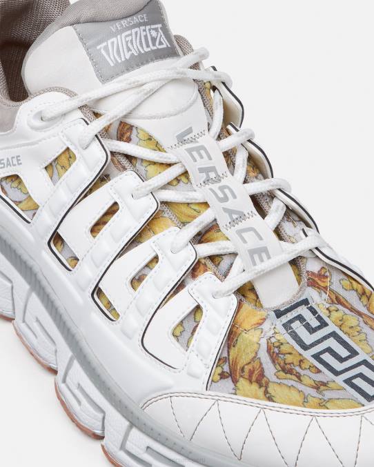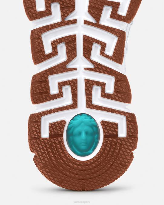 Las zapatillas Trigreca aportan innovación a la estética en constante evolución de la marca. Las ejecuciones tridimensionales de greca en las suelas ofrecen un aterrizaje impactante con el "sistema de amortiguación greca". En un guiño sutil a la ciudad natal de Versace, la parte superior tiene una discreta impresión de las coordenadas de Milán.