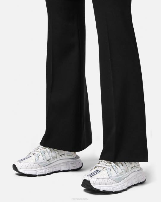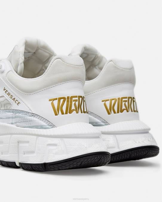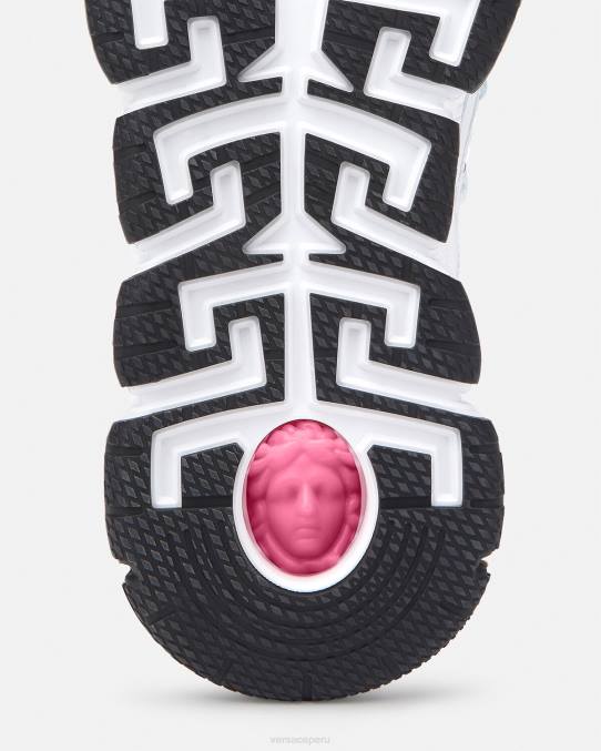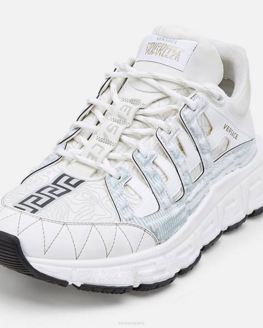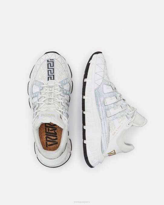Las zapatillas Trigreca aportan innovación a la estética en constante evolución de la marca. Las ejecuciones tridimensionales de greca en las suelas ofrecen un aterrizaje impactante con el "sistema de amortiguación greca". En un guiño sutil a la ciudad natal de Versace, la parte superior tiene una discreta impresión de las coordenadas de Milán.