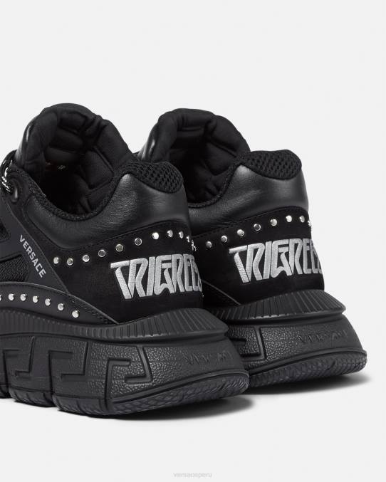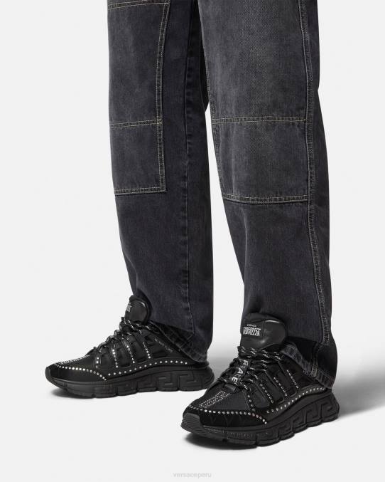 Versace zapato hombres zapatillas trigreca con tachuelas 6BPV1544 negro