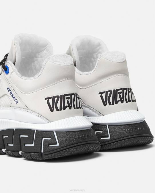 Las zapatillas Trigreca aportan innovación a la estética en constante evolución de la marca. Las ejecuciones tridimensionales de greca en las suelas ofrecen un aterrizaje impactante con el "sistema de amortiguación greca". En un guiño sutil a la ciudad natal de Versace, la parte superior tiene una discreta impresión de las coordenadas de Milán.