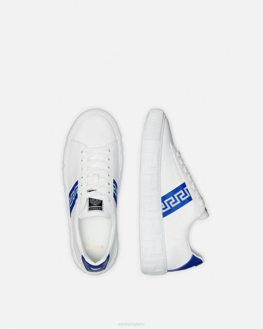 Caracterizada por un patrón de greca grabado en suelas de goma vulcanizada y red de greca lateral, la silueta de caña baja presenta parte superior de cuero y un diseño de cordones. un sello con el logotipo en la parte trasera acentúa el estilo con cordones.